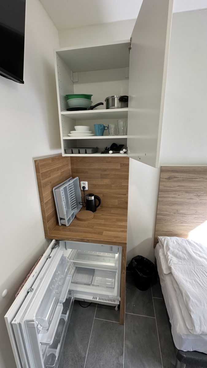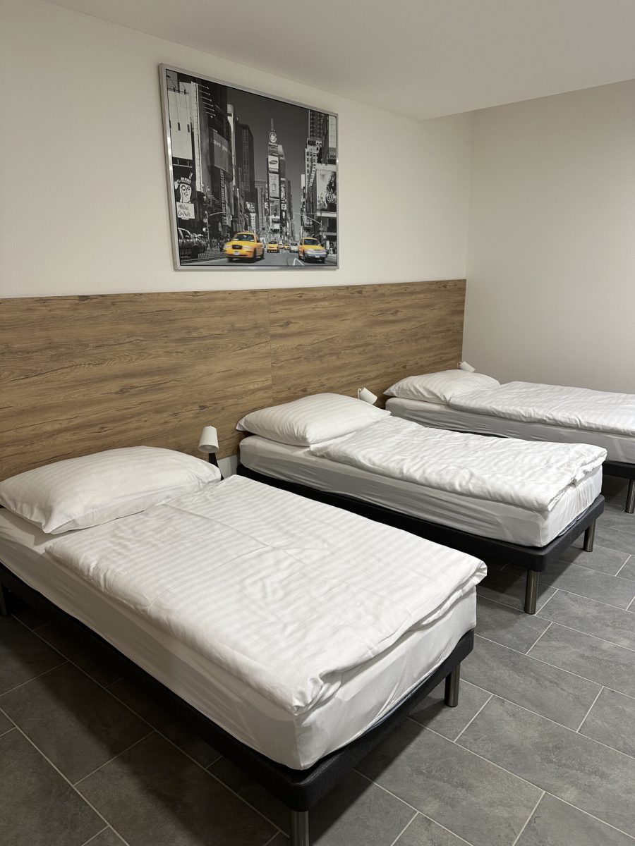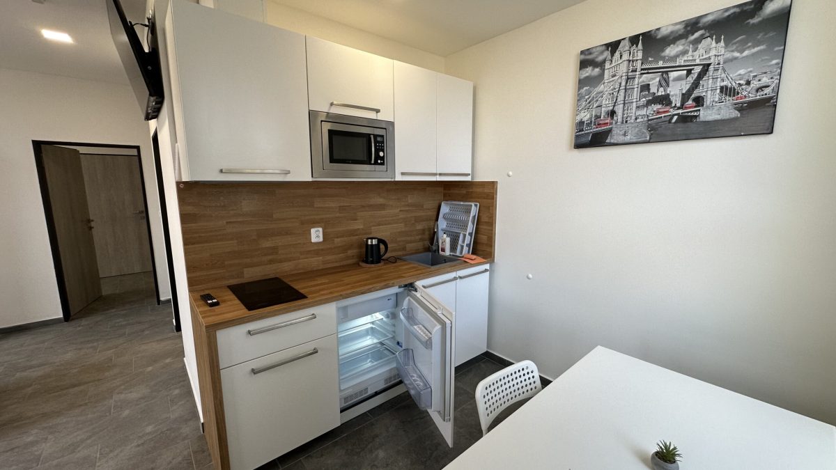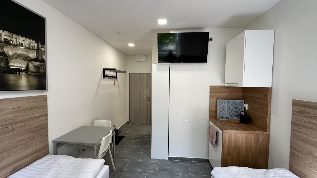 Kapacita ubytování je 25 apartmánových pokojů různých velikostí s vlastním plně vybaveným kuchyňským koutem a koupelnou se sprchou. Každý pokoj má LED televizi s 50-ti kanály. Wi-Fi připojení je samozřejmostí. Z dalšího vybavení můžeme nabídnout pračku se sušičkou ve společných prostorách. Žehlička je na vyžádání. Parkování zdarma přímo u hotelu pro naše hosty. V blízkosti se nachází autobusová i vlaková zastávka a mezinárodní letiště.